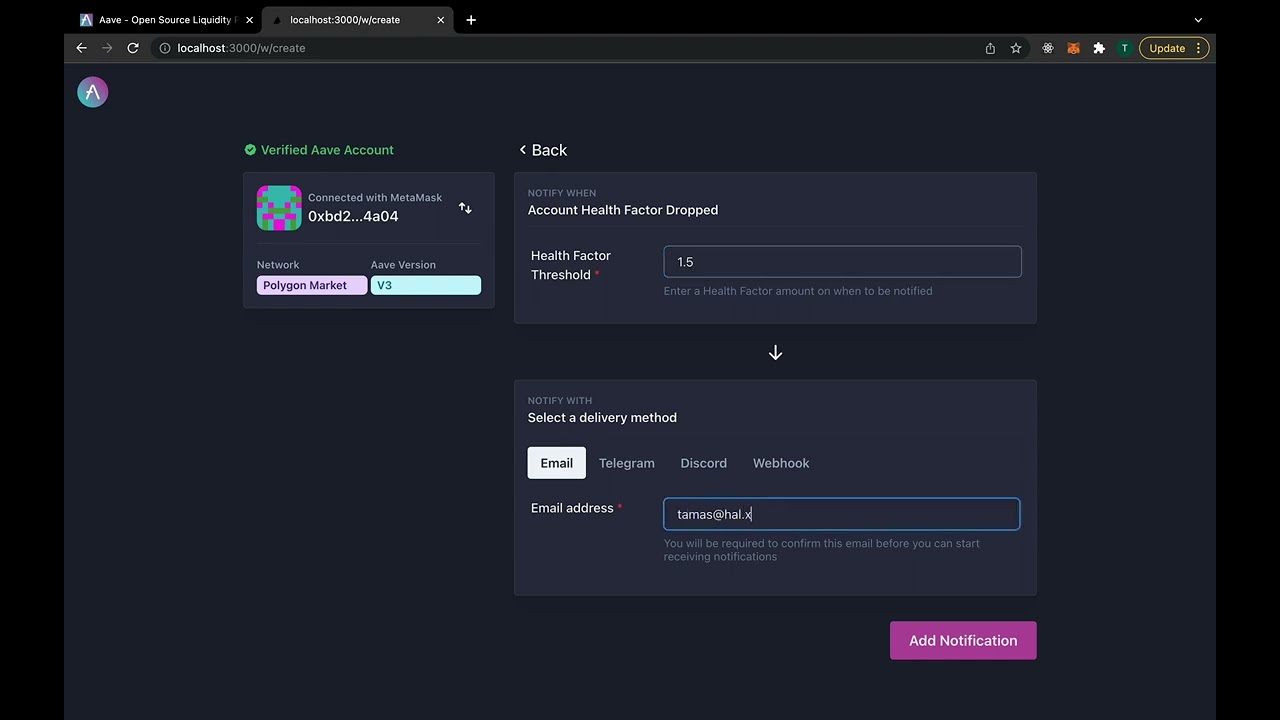 In our research, we found that many protocols wanted to integrate our notifications engine to re-engage their users, help them manage their risks (Health Factor in the case of Aave), grow transactions, TVL or boost their DAO participation and voting. But we had to integrate better into the user journey and provide a seamless experience. We also learned that notifications had to meet people where they are and when they need it.