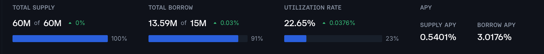 PYSUSD has reached its supply and borrow caps on the Ethereum Core instance at 60 and 13.6 million, respectively, following a substantial increase in lending activity over the last week.