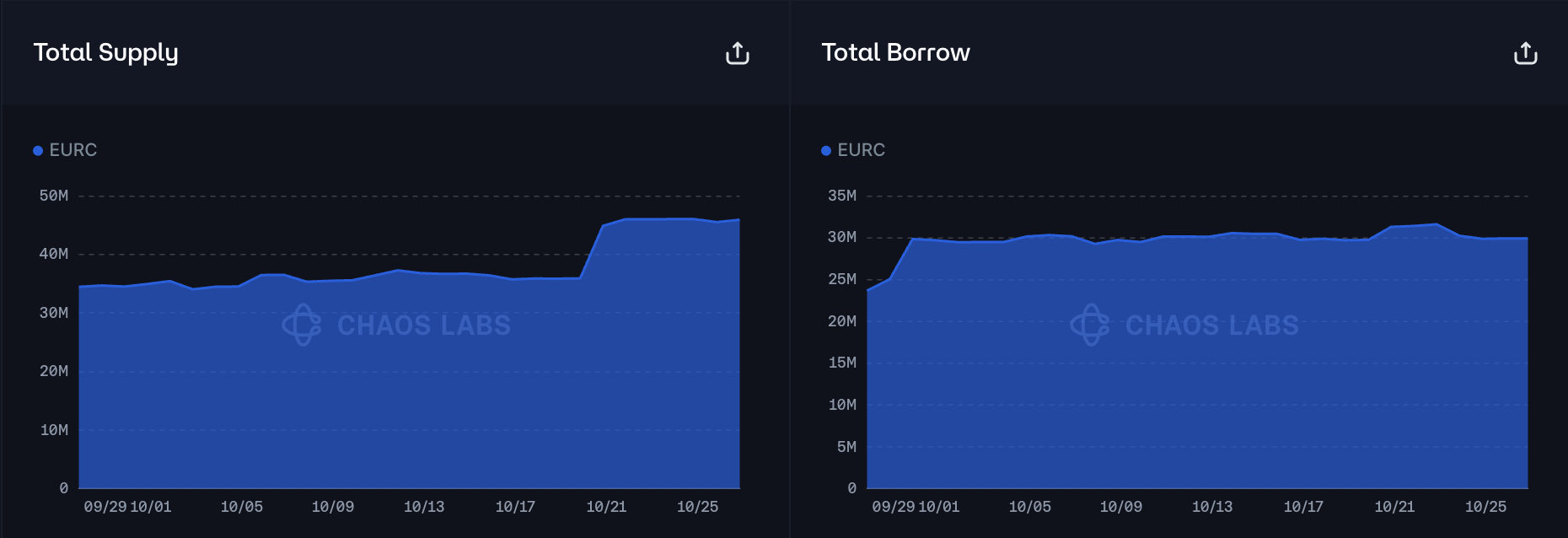 At the time of writing, on-chain liquidity on Ethereum is sufficient to limit slippage on a 2 million EURC sell order to 2%, supporting an increase of the supply and borrow caps.