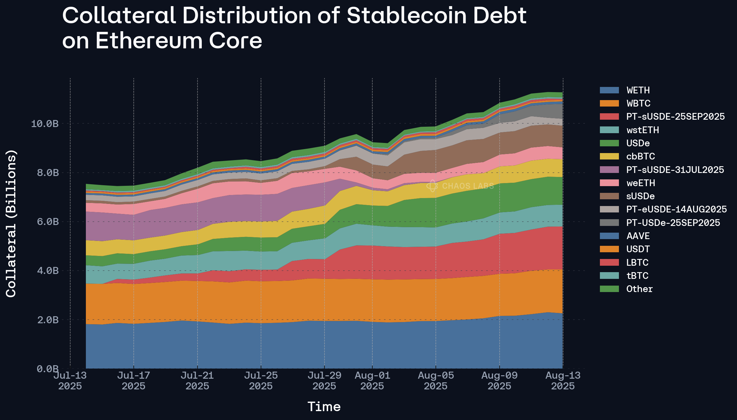 The majority of USDe collateral currently consists of USD-based PTs such as PT-USDE-25SEP2025 and PT-sUSDE-25SEP2025. As of this writing, PTs account for approximately 90% of the total USDe collateral distribution.