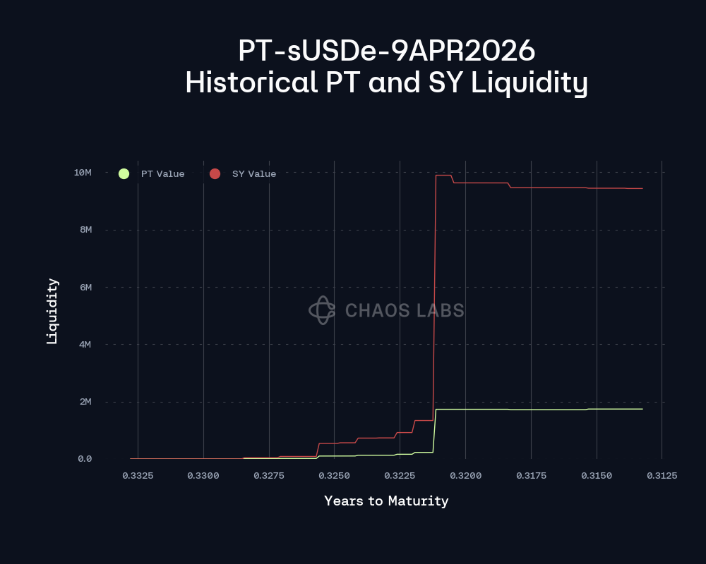 The SY Liquidity in PT-sUSDe-9APR2026 and PT-USDe-9APR2026’s AMM has reached just $10 and 4 million within the first week of launch, indicating a substantial level of LP support, and has remained at that level since.