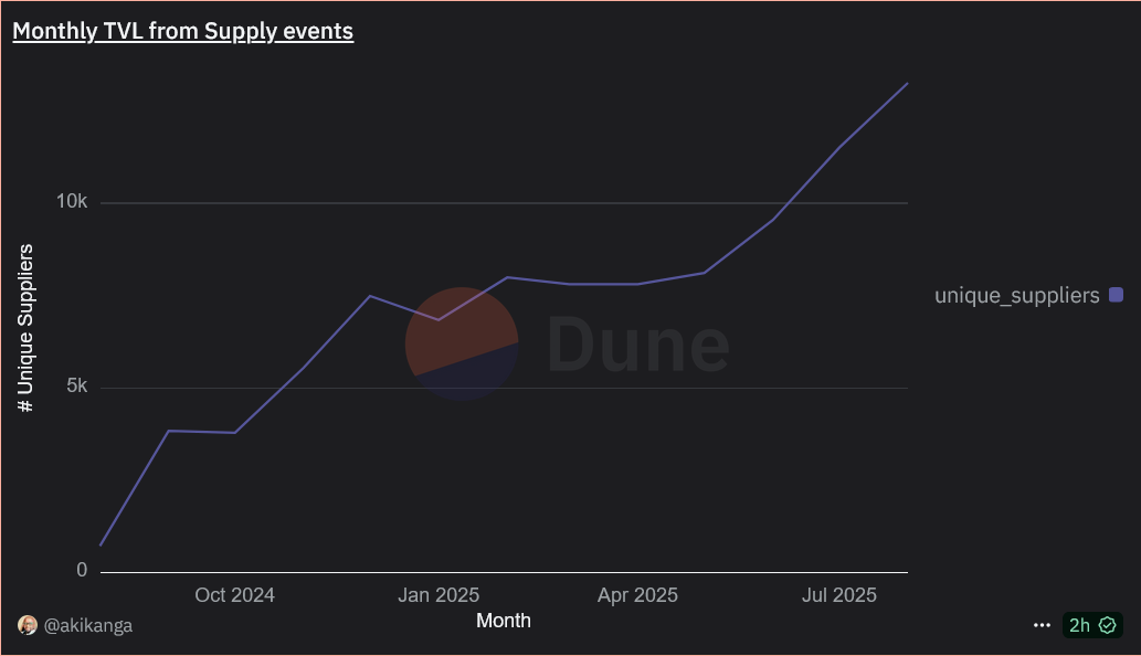 - Supplier deposits expanded +41.6% MoM, led by ETH and USDC inflows.